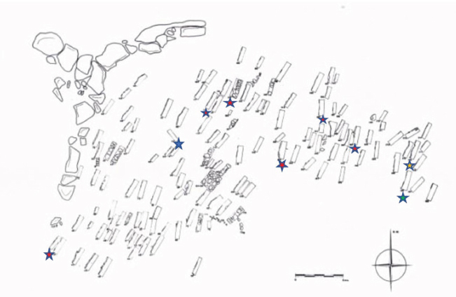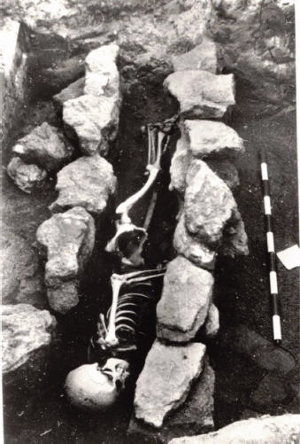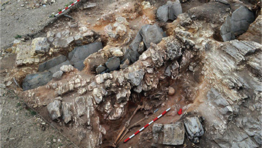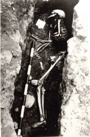 Figura 23. Tumba 103. La fosa presenta una posible cubierta interna compuesta por grandes lajas de piedra dispuestas de forma horizontal sobre un “cajón de mampuestos” que albergaría el cadáver. Fuente: ídem.