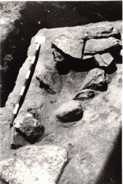 Figura 19. Tumba 44. Podemos observar a la derecha de la fotografía grandes lajas de piedra que sellan la covacha lateral. Fuente: fotografías extraídas de la tesis doctoral de Philippe du Souich, 1978.