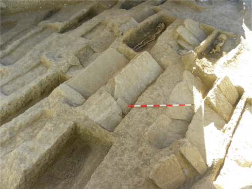 Figura 5. Panorámica de la maqbara de Mancoba, Baza, donde se observa la disposición de las lajas que cubren la “falsa laḥd”. Fuente: imagen cedida por Ana Tapia Espinosa.