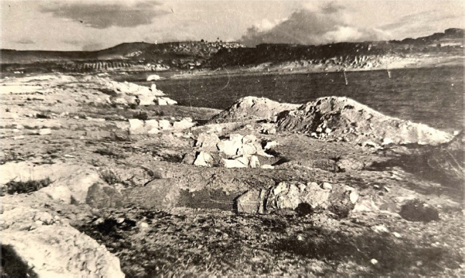 Figura 8. Vista panorámica del espacio excavado (ARRIBAS, RIU, 1974). Se aprecia claramente la tipología laḥd.