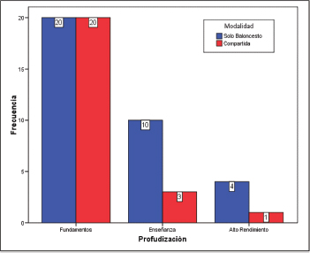 Figura 6. Créditos de las materias de baloncesto, según profundización, según modalidad