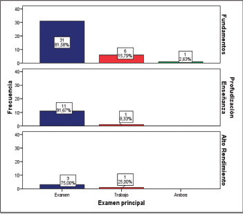 El mayor porcentaje de evaluación que se puede apreciar en la mayoría de las materias es a través de exámenes teóricos (ver Figura 9).