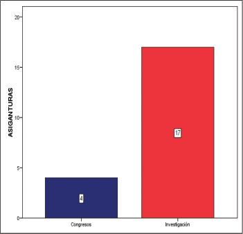 Solo en cuatro universidades del total se valora positivamente la asistencia a congresos o reuniones científicas, al igual que en 17 de ellas los trabajos de investigación o colaboración, es decir, actividades relacionadas con la investigación (ver Figura 10).