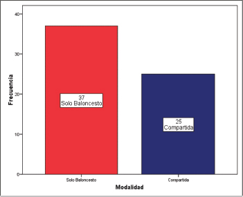 - Modalidad (solo baloncesto; compartida con otro; compartida, pero se da completa)