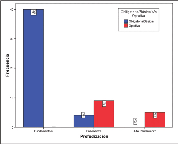 Figura 3. Distribución de modalidad de asignaturas, según nivel de profundización