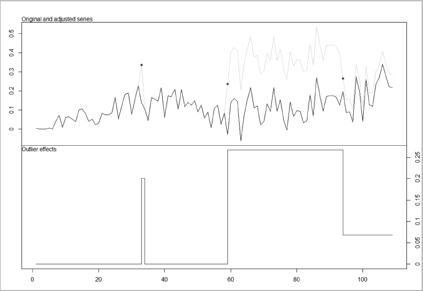 López de Lacalle, J. (2019). tsoutliers: Detection of Outliers in Time Series. R package version 0.6-8. https://CRAN.R-project.org/package=tsoutliers