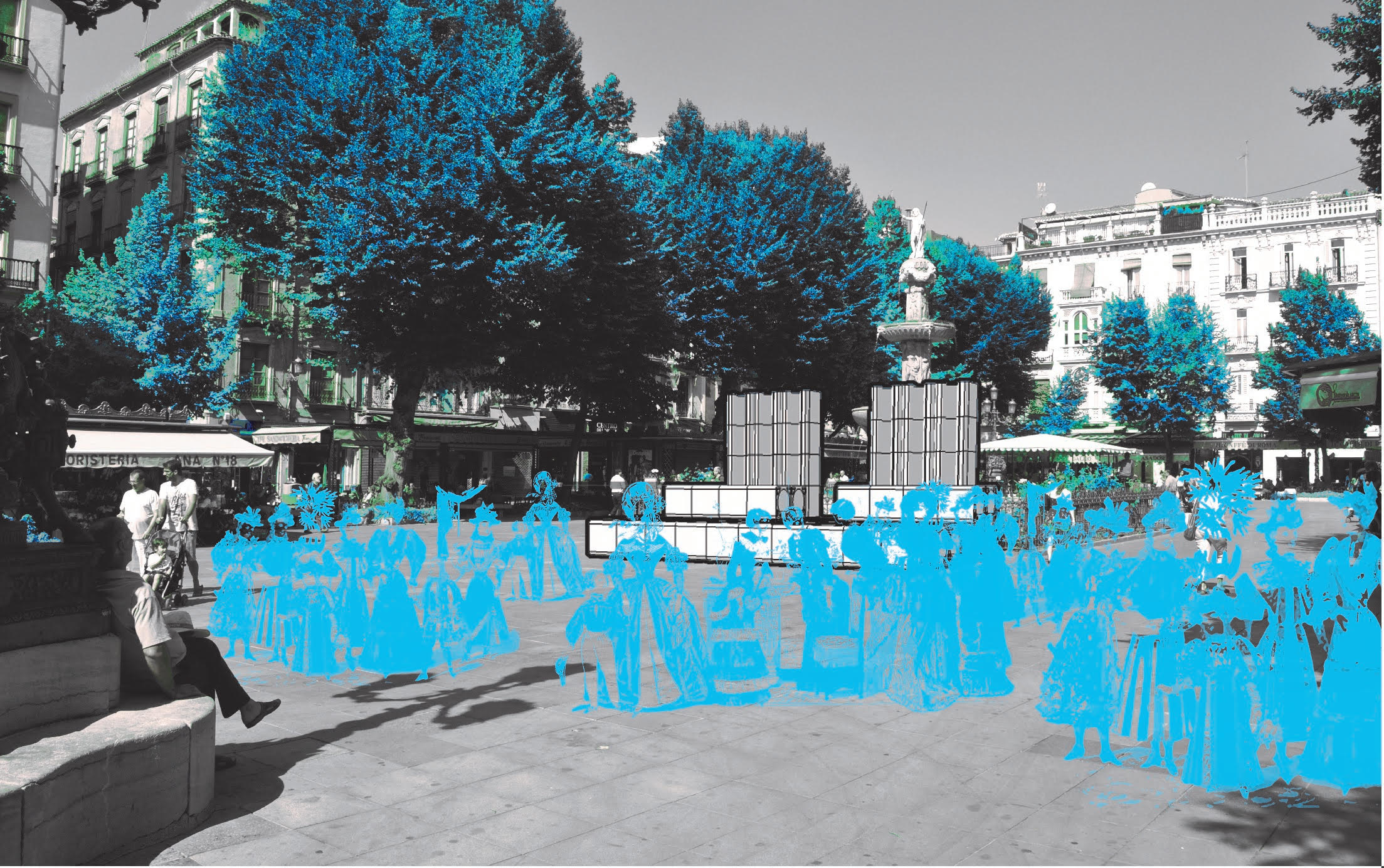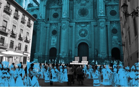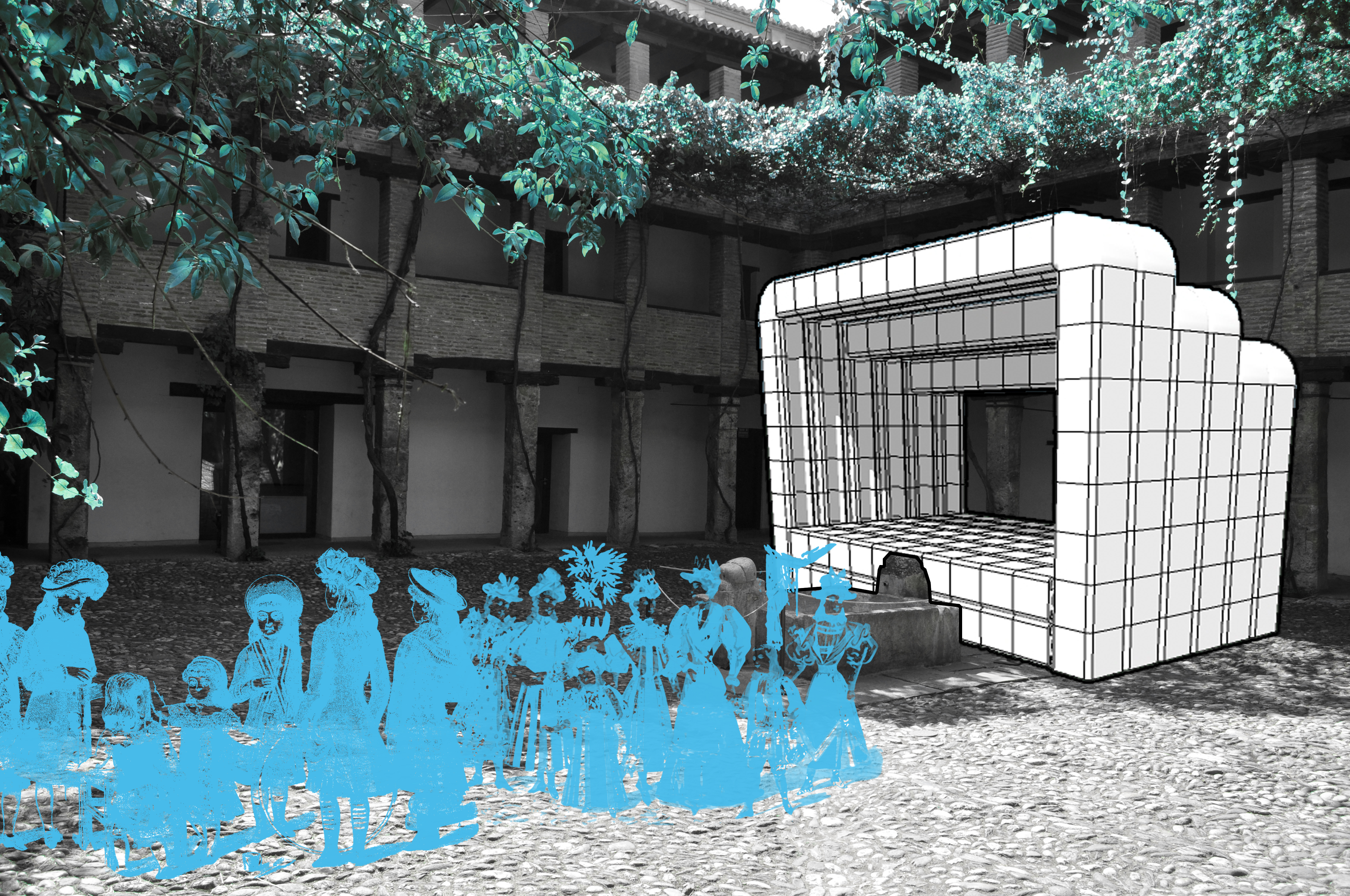 The close connection between performance art and the educational field has meant that most of the schools have in their facilities theaters or multidisciplinary use. Our artistic proposal have the objetive to bring the historic and urban scenic heritage of Granada to children and primary school students. Therefore have been selected four spaces that traditionally were used for scenic purposes and four others, originally destin for different purpuses. All of them meet the perfect characteristics to hold artistic performance. A visual recreation has been designed with a proposal of location of the stage in each of these spaces, the student either from the perspective of the creator or the audience, will discover and explore through an artistic route.