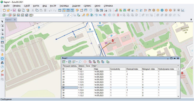 The value for each indicator can have “-1” - deviation from the standard, “1” —the indicator is normal and “0”— the indicator was not measured (lack of a measuring sensor or a technical reason). The resulting table is imported into the ZuluGISgeodata database for further display of the analysis results on the map.