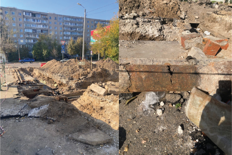 The developed analytical software for monitoring centralized water supply was tested in Murom, Vladimir region of the Russian Federation, together with the municipal service organization Municipal Unitary Enterprise Vodokanal. Figure 5 shows an accident associated with a burst worn pipe.