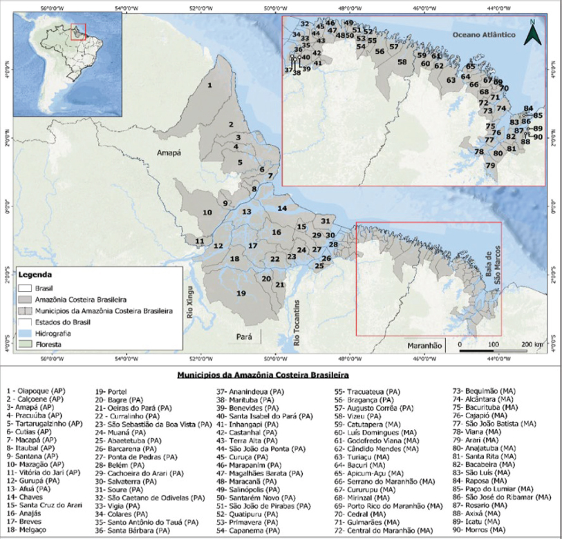 Figura 1. Recorte espacial da Amazônia Costeira Brasileira e seus respectivos municípios