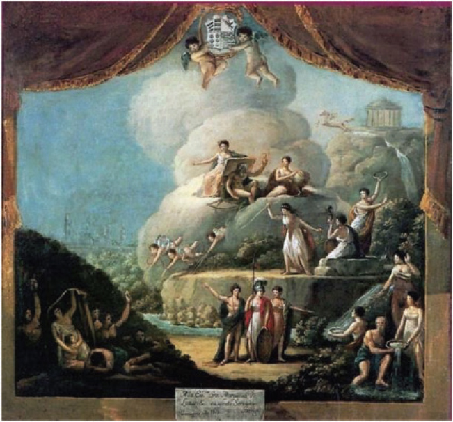 Figura 13. Lienzo con el boceto del telón de boca del Teatro Principal de Zaragoza. Cristóbal Garrido. 1818