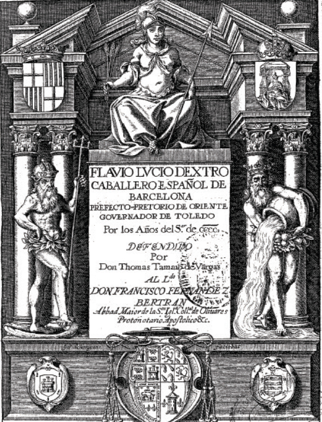 Figura 11. Portada del texto de Tomás Tamayo de Vargas, Flavio Lucio Dextro Caballero español de Barcelona… 1624