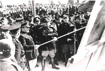 Imagen 1. Mussolini inaugurando la presa del Salto, conectada a la del Turano mediante un túnel. Fotografía tomada del portal Il capoluogo d’Abruzzo.
